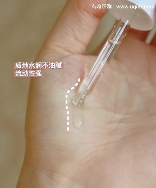 這款精華液的流動性挺強的,質地挺水潤的,涂在臉上很清爽,一點也不黏膩,很好吸收。我的皮膚是混油,這款用起來也不覺得臉上很悶。我一般滴3-5滴,涂抹在面部,然后按摩一下,我會在有黑頭的地方多按摩一會,讓它吸收的更快,我用完的明顯感覺就是臉很嫩,看起來很有水分,黑頭感覺也沒有那么多了。