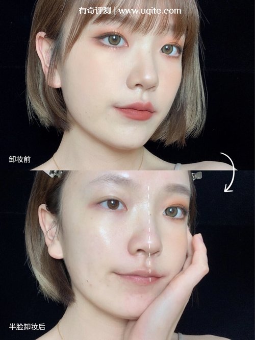 逐本卸妝油的卸妝效果還是不錯的,臉和眼唇都能卸干凈,臉上基本按摩乳化一會就可以全部卸下來,眼唇就需要多按摩一會,我用KISSME的睫毛膏也能輕松卸掉,每次整張臉用兩三泵就ok了,而且它用起來也不辣眼睛。這款卸妝油用完之后我有感覺鼻子上的黑頭有被搓下來一點。