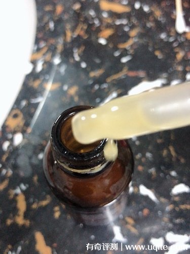 精華液的包裝非常的上檔次,而且是滴管式的提取方式,使用起來會比較的方便衛(wèi)生,精華液是淡黃的濃稠液體狀,流動性還是很強的,基本上沒有什么味道,很好推開,延展性很強,而且吸收快,不會覺得很油膩,這一點我很喜歡。