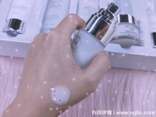 清潔完面部之后就開始用水乳了,美肌水的質(zhì)地是半透明的水狀,流動(dòng)性很強(qiáng),潤(rùn)膚乳和精華液都是按壓頭的設(shè)計(jì),使用起來方便衛(wèi)生,質(zhì)地都是乳白色的,非常的水潤(rùn),都有一定的流動(dòng)性,上臉好推開,輕輕按壓輕拍即可吸收。