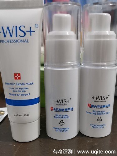 wis去黑頭套裝一共有三瓶,黑頭導出精華、黑頭吸出膜和毛孔細致精華液,雖然都是小瓶,但掃一掃確實是正品,而且也是在旗艦店買的,還比較放心。