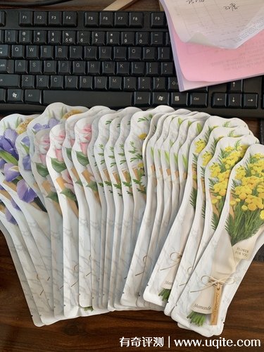 面膜的包裝就是一束花的形狀,看著就和真的一樣,拿在手上很搶眼。這款面膜分為百合(煥亮)、玫瑰(保濕)、蠟菊(緊致)、鳶尾(補水)和洋甘菊(舒緩)這五種類型的面膜,面膜的包裝都和產(chǎn)品的花朵成分相對應(yīng)。