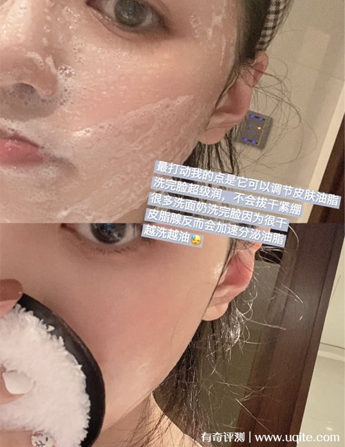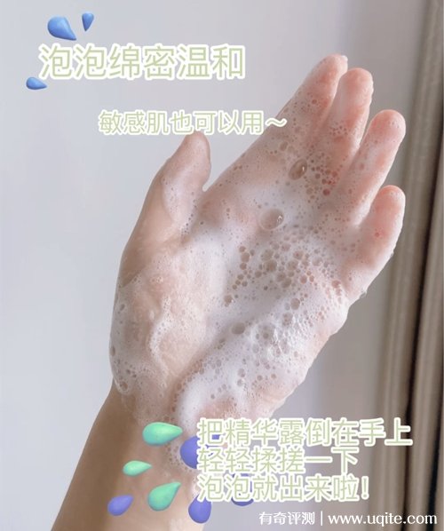 雖然質(zhì)地是精華液質(zhì)地,但泡沫還是很豐富的,基本上沾一點(diǎn)水就可以打出很多泡沫,洗完臉之后很清爽,臉上的油脂都被洗下去了,完全不會(huì)干燥緊繃,還挺有水分感的,我有時(shí)候洗臉不注意,會(huì)弄到眼睛里,但完全不會(huì)辣眼睛,還是很溫和的。