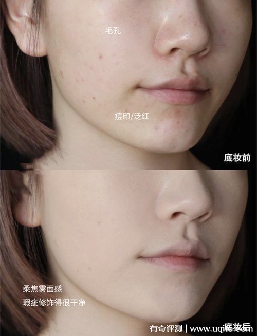 它的質(zhì)地還挺水潤的,上臉延展性很好,用美妝蛋輕輕的一拍就可以拍開,打出來是那種霧面的奶油肌妝效。涂完之后整體看著非常的通透,一點也不假白,臉上的毛孔都被隱形了。它的遮瑕效果也很不錯,我臉上的痘印和鼻翼泛紅的地方都被遮住了,就算繼續(xù)疊加也不會顯得厚重。