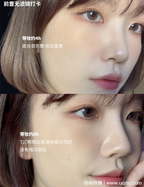 我一個混油皮中午化完妝出門,到晚上10點回來,妝面還是很完整,一點都沒有斑駁卡粉,就算有點出油也不影響,看著很有光澤度也不暗沉,感覺是越夜越美麗,這種控油持妝的效果我真的非常滿意,一點也不輸大牌。