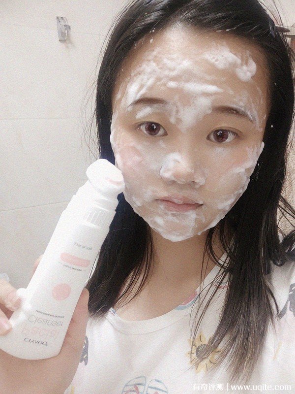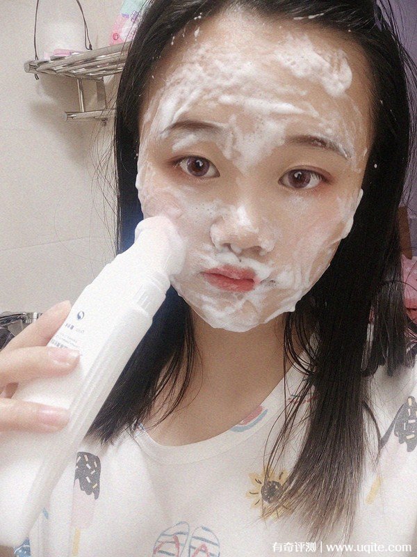 洗面奶本身是自動起泡設計,起泡速度挺快的,有種在用泡泡面膜的感覺,泡沫會越來越多,越來越綿密,配合著刷頭,還挺舒服的。性質也很溫和,用著沒有不適感,有時候不小心弄進眼睛也沒事。