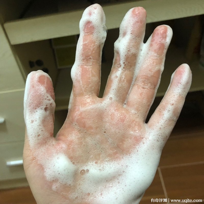 brandfree潔面慕斯的香味挺好聞的,有一種高級感。使用很方便,按壓就出泡,泡沫超級豐富而且細膩,上臉輕輕柔柔的很舒服。我是輕度敏感肌,用著也沒有什么不適感,而且它進眼睛了也不刺痛,都沒啥明顯感覺。