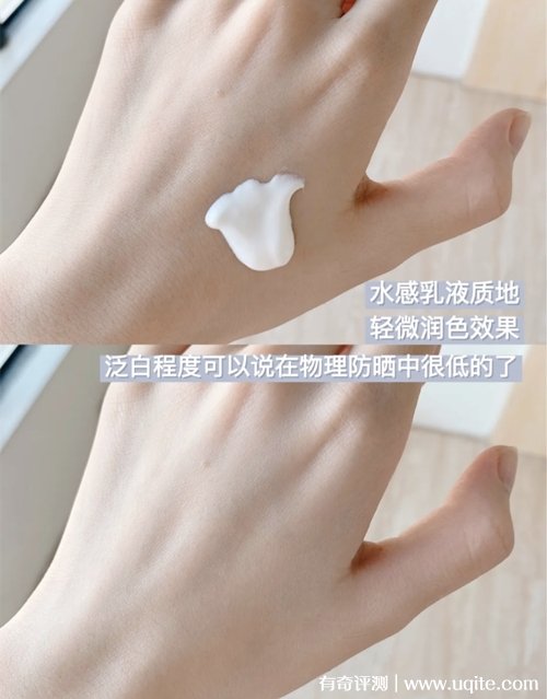 獨(dú)島防曬霜的質(zhì)地是水感乳液的質(zhì)地,上臉很好推開,水潤不黏膩,質(zhì)地還是很輕薄的,在臉上涂開之后有一點(diǎn)點(diǎn)的潤色效果,帶有一點(diǎn)點(diǎn)光澤感。
