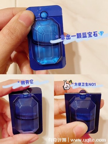 卸妝油的包裝顏值很高,而且卸妝油都是整顆的獨立包裝,一盒里面有4板,每板是四粒,使用使直接掰下來就可以使用了,很方便,并且很衛(wèi)生,很適合出門攜帶。卸妝油是透明的油狀質(zhì)地,流動性很強,帶有一點淡淡的柑橘味,很好聞,一點也不刺鼻。