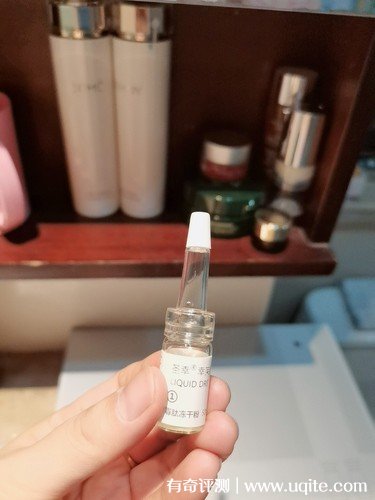 在使用凍干粉之前,要將凍干粉與精華液驚喜融合,然后再上臉,使用時(shí)配上滴管。這樣混合后的一小瓶?jī)龈煞劬A液我可以用兩到三回,然后放冰箱保存。