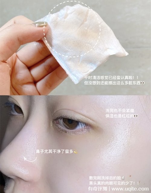 要注意的是,這款面膜的使用時(shí)間不要太長(zhǎng),差不多5分鐘就可以了,5分鐘后就可以用化妝棉把臉上的泡沫擦掉了,我平時(shí)覺得自己洗臉挺干凈的,結(jié)果一擦,化妝棉上都是黃色的化妝殘留物,看著有點(diǎn)惡心。