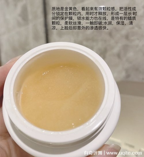 粒子面霜的質(zhì)地是金黃色的,看起來有微顆粒感,上臉之后很好推開,滋潤度很高,不會覺得黏膩,稍微按按摩就全部吸收了,滲透很快,每次用完之后就感覺臉很滑嫩,看著挺有光澤度的。