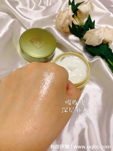 拿到產(chǎn)品之后我就在手上試了一下,面霜非常的輕薄,上手易推開,使用過后一點也不油膩。上臉之后的感覺也很親膚,涂抹之后面部的肌膚就像喝飽了水一樣,清爽光滑。