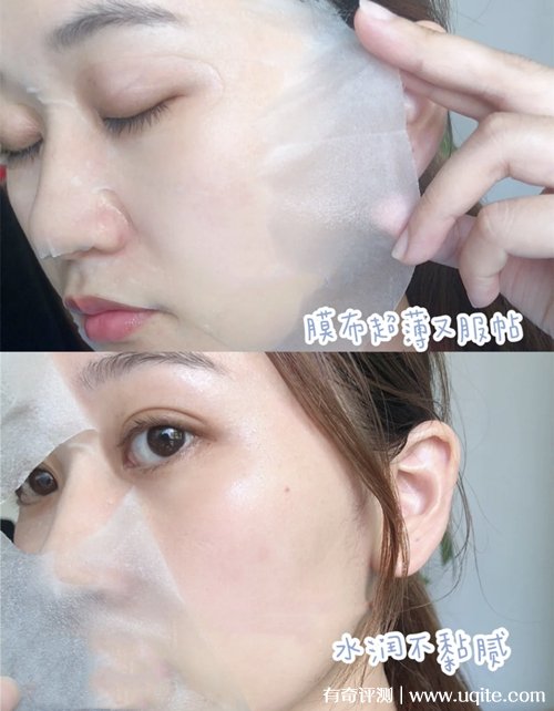 Fan Beauty海葡萄面膜打開之后沒有聞到什么很刺激的味道,應(yīng)該是沒有添加香精酒精的,我的皮膚還是比較敏感的,用完這個面膜也沒有過敏。這款面膜的膜布有三層,拿在手里滑滑的,敷在臉上挺服帖的,也不會往下掉。