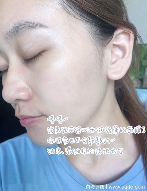 這款面膜敷完之后整個肌膚就像喝飽了水一樣,最近不是天氣很干嗎,我?guī)缀趺刻於荚谟盟a水,用完之后第二天起來臉也不會覺得干,臉摸著也是軟軟滑滑的,關(guān)鍵是用完化妝也不卡粉了。