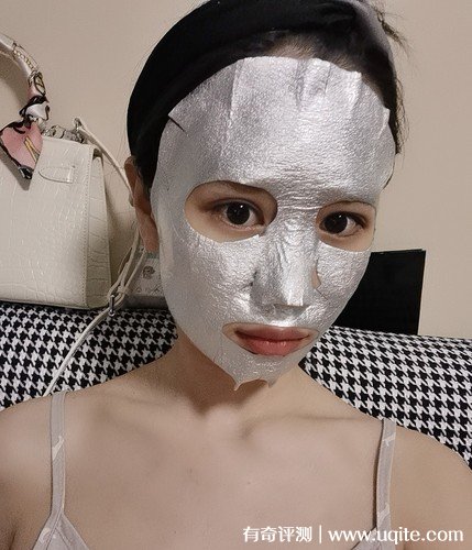 拿到面膜的當(dāng)天晚上我就趕緊使用了起來,面膜的外層是銀箔紙的質(zhì)地,但是里面還是白色的棉質(zhì)面膜,面膜上臉很服帖,溫和程度不錯(cuò),一點(diǎn)刺痛感和不良的反應(yīng)都沒有,非常的補(bǔ)水。面膜每次敷貼十五到二十分鐘就可以摘下去清洗了(這一點(diǎn)很重要)。