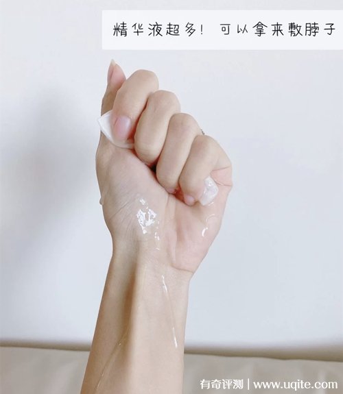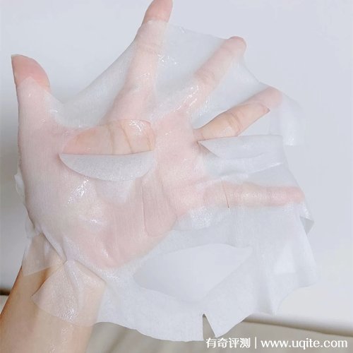 凡爾賽晚安面膜的膜布是屬于比較厚的那種,所以它還挺能掛住精華的,這款面膜的精華還挺多的,拿出膜布后,里面還剩很多,貼在臉上的貼合度很好,貼上去之后也不會(huì)往下掉。