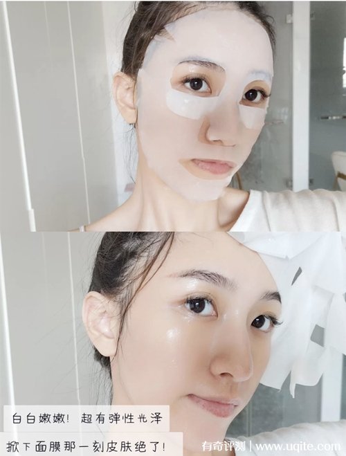 因?yàn)檫@款面膜是一個(gè)懶人面膜,我一般都是早上用一片,貼個(gè)3-5分鐘,敷完之后皮膚挺水潤的,肉眼可見的那種,而且臉上摸著也不粗糙了。而且它貼在臉上冰冰涼涼的,還有一定的消腫作用。