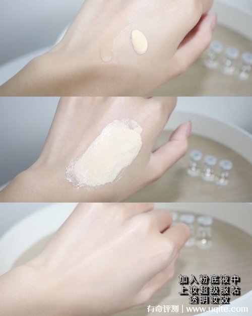 甄然玻尿酸原液還挺百搭的,因?yàn)槲沂歉善?,這個(gè)季節(jié)化妝多多少少還是很干燥的,有時(shí)候化妝會(huì)起皮卡粉,我現(xiàn)在每次化妝前都會(huì)滴兩滴這個(gè)玻尿酸原液在粉底液里面,化完之后妝效很服帖,也沒(méi)有卡紋、卡粉的現(xiàn)象。