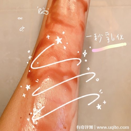 卸妝膏有兩層保護蓋,密封性和保持效果很不錯,還有配備勺子,使用時取一小勺就可以了。拿到卸妝膏之后,我就趕緊在手臂上用了一下,效果很好,將卸妝膏輕輕涂抹在手臂的彩妝處精選摩擦,彩妝馬上就乳化了,然后再用紙一擦就趕緊了,效果很明顯。
