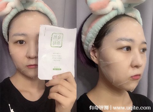 采之汲面膜打開之后我聞著有一股谷物發(fā)酵的味道,味道聞著也不刺激,像我這種敏感肌,用完這款面膜后也沒有過敏,這款面膜的膜布是帶一點米黃色的,膜布還挺厚實的,貼在臉上也挺服帖的,不會往下掉。