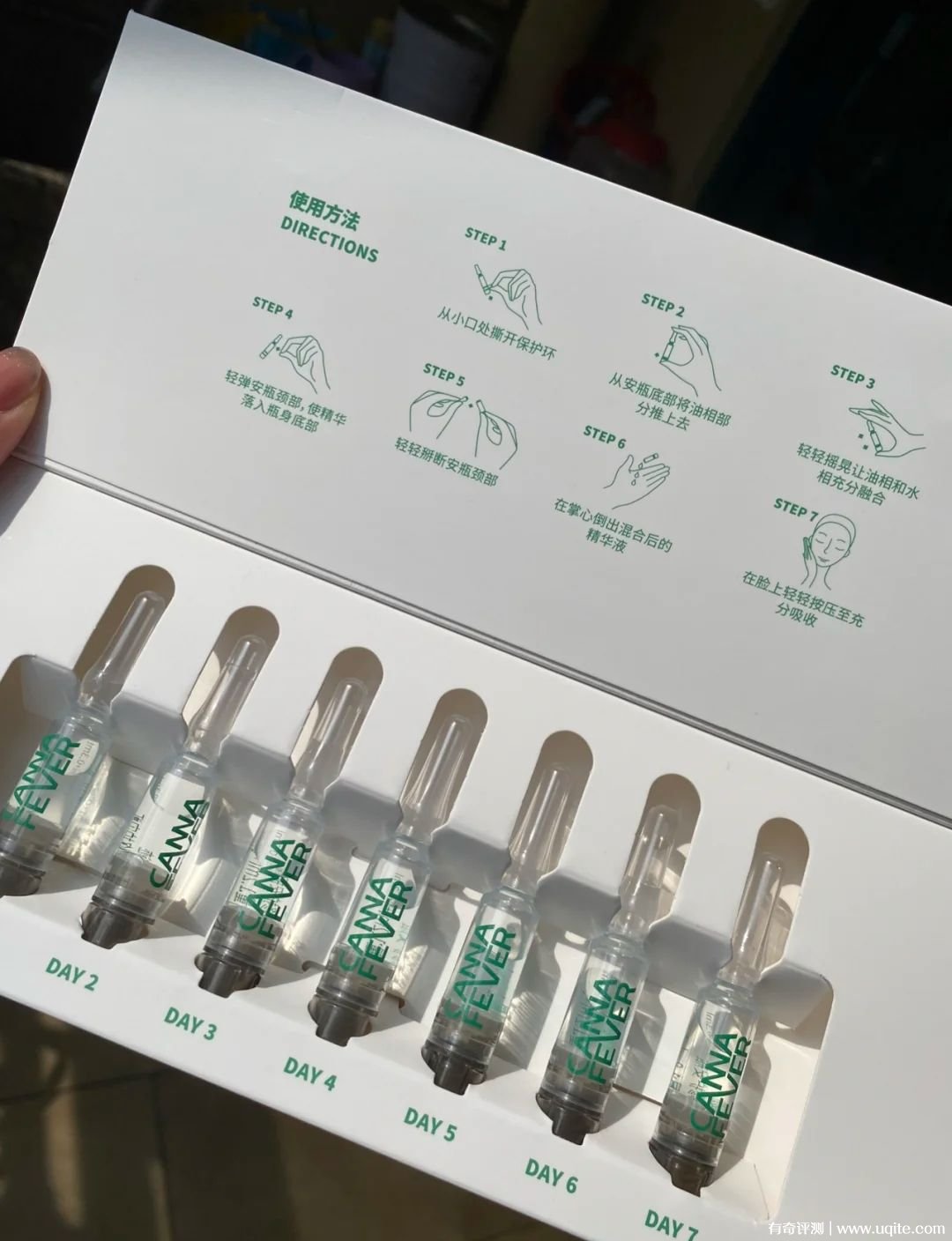 我是敏感肌,臉上偶爾會泛紅長痘痘,尤其是換季的時候,這段時間就因為突然變天皮膚變得干燥、泛紅,還有疙瘩冒出了一點點,有逐漸變大的趨勢,于是決定趕緊用修護精華。cannafever安瓶我是在小紅書上種草的,因為這種小瓶子用著蠻方便的,而且看一些評價也說它效果不錯,就買了盒。