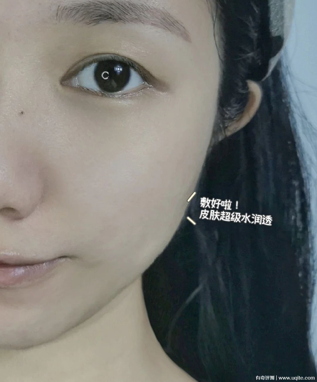 looksmeii面膜用完后皮膚蠻水潤的,而且視覺上看著透亮了些,毛孔也有收縮,摸著有種緊致彈嫩的感覺。保濕方面也很不錯,我平時用完面膜就懶得再用水乳之類的了,但用完第二天醒來皮膚依舊很有水分感,看著也比前一晚透亮了些。