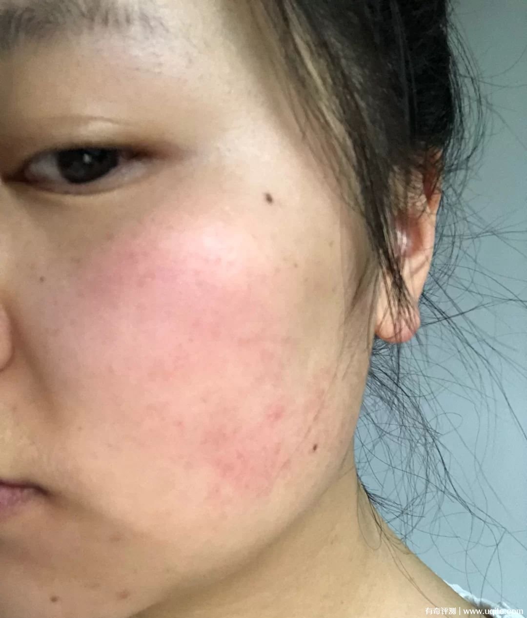 至于修護(hù)效果,我用了第2天就有好轉(zhuǎn)一些,泛紅面積變小了,疙瘩也稍稍消了點(diǎn)?,F(xiàn)在用了3支(早晚各一次),疙瘩基本消失了,泛紅也少了一大半了,我還是挺滿意的,比以前單純吃藥快太多了。
