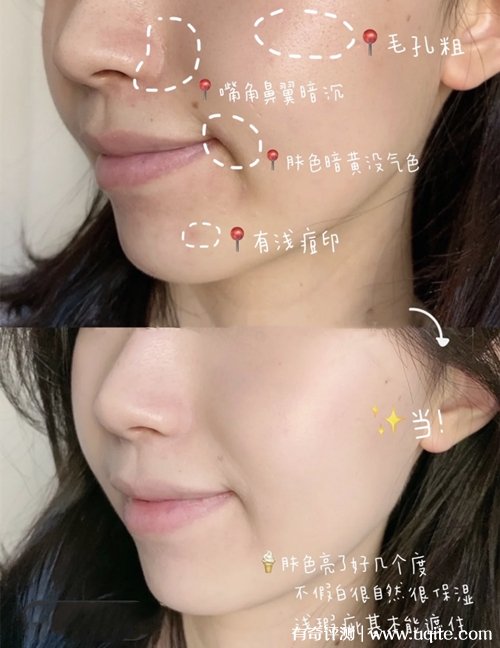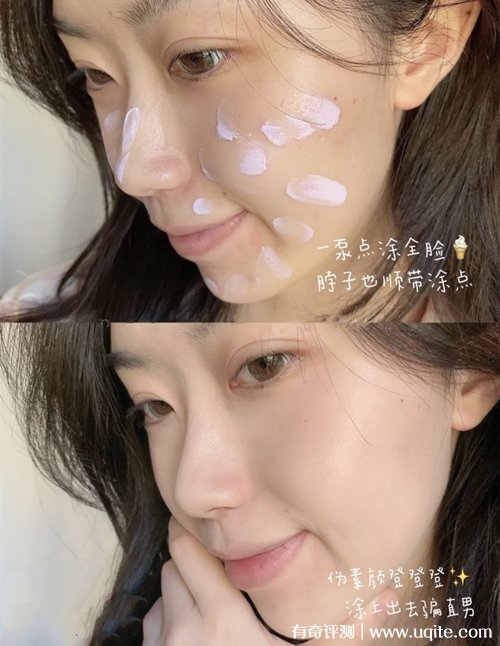 因?yàn)槲移綍r(shí)上班時(shí)間很趕,來不及化妝,用這款隔離霜的效果跟粉底也差不多,用完之后臉上看著也很有光澤,一點(diǎn)也不假白,整體膚色提亮不少,看著特別有氣色,通透自然。