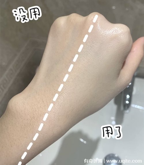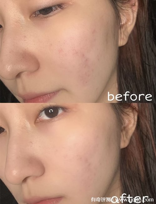 它的質(zhì)地是特別水潤的那種,流動性比較強,上臉很清爽,我這個油皮用完完全不會覺得黏膩,它有一定的保濕力,一整天下來臉摸上去都很有水分,而且它還有一點的遮瑕力,像我臉上的一些痘痘和紅印,都可以被修飾的很好。