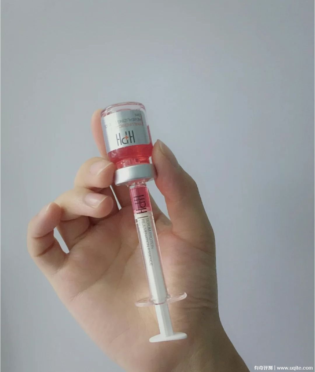 HPH小紅針精華液外包裝看著蠻精致的,用的時候把它針管里面的注入到瓶子里面然后再混合搖勻就好了,混合過程還蠻解壓的。它搖勻后因為被稀釋了一些,所以顏色變淡了。