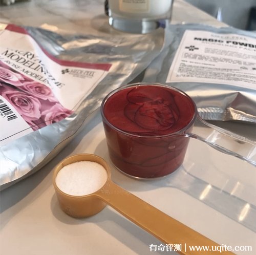 MediPeel玫瑰軟膜它是需要自己diy的,用之前需要把軟膜和精華粉充分攪拌融合,官方建議一次用一大勺軟膜和一小勺精華粉,照我的使用經(jīng)驗,我感覺大半勺軟膜就夠了,一大勺太多了。