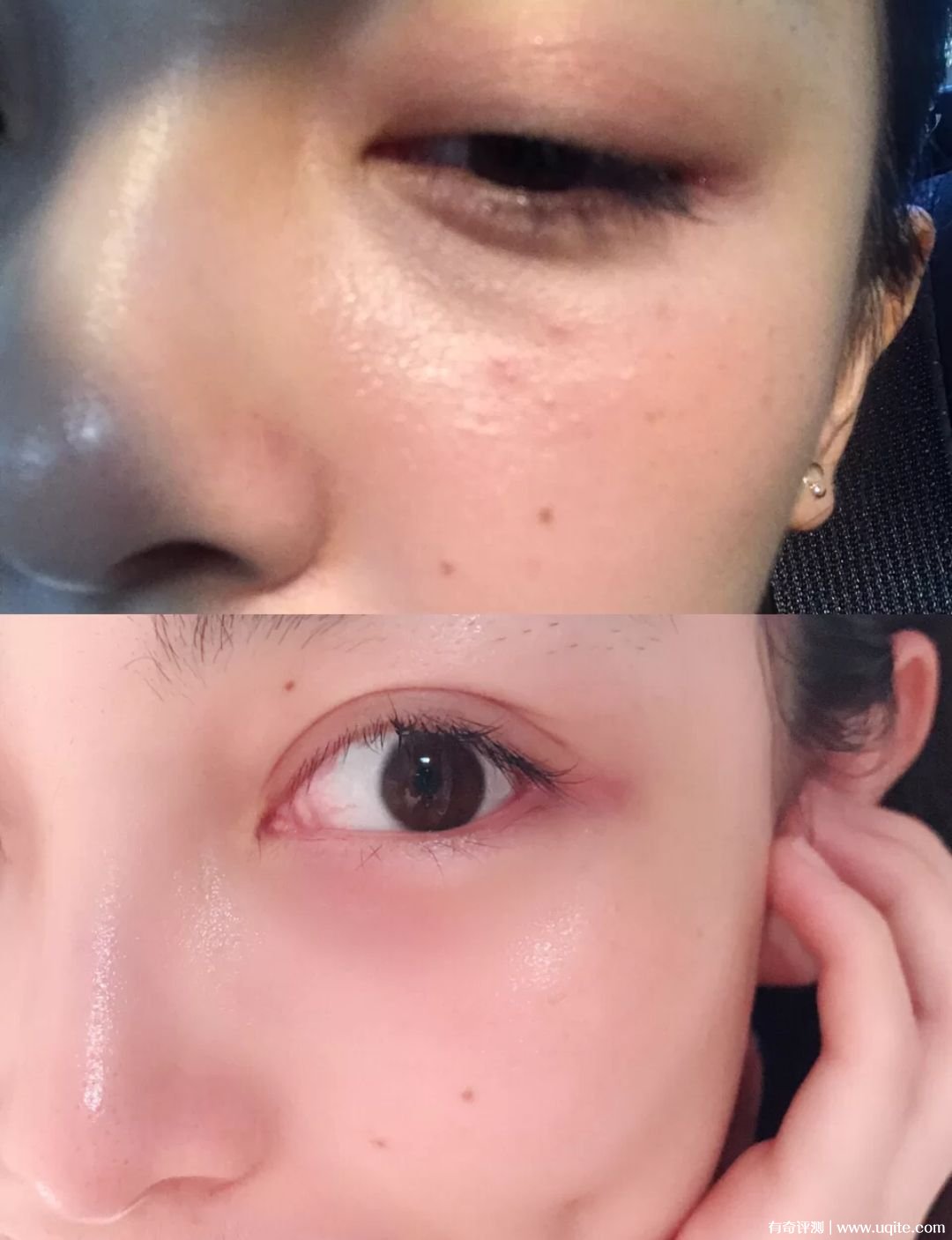 就補(bǔ)水保濕來(lái)說(shuō),我覺(jué)得它還挺不錯(cuò)的,我有時(shí)候懶得用其他水乳之類(lèi)的,就只用它,但第二天醒來(lái)皮膚還是很嫩的感覺(jué),這個(gè)季節(jié)也不會(huì)干。至于其他方面,我目前用了10來(lái)天的樣子,雖然皮膚整體好像沒(méi)有變白(照片受光線影響很大),但是痘痘是消了的,我記得好像是用了兩三天就癟下去了,五六天就基本沒(méi)有印跡了,現(xiàn)在完全好了。
