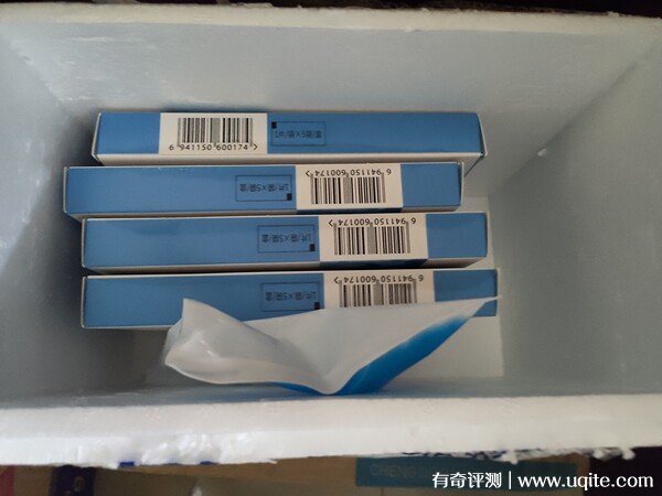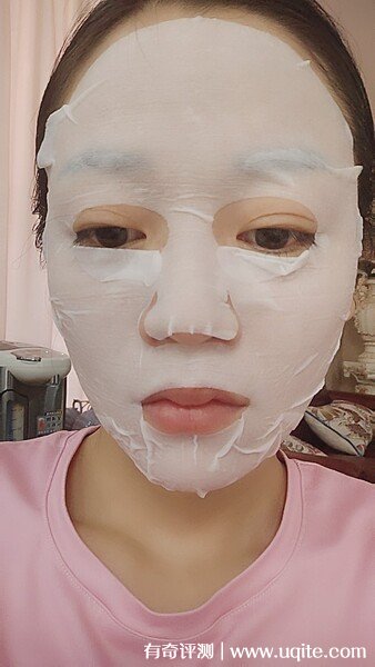 創(chuàng)??狄后w敷料到的時候是用泡沫盒裝的,里面還有冰袋,包裝得倒是挺仔細(xì)的。它膜布是比較厚的類型,不是很服帖,貼著有點(diǎn)皺皺的(眼睛那里是拉下來的,倒不是皺的),這是個比較明顯的缺點(diǎn)。