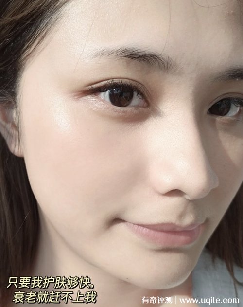 乳液的話,也有一定的流動性,涂在臉上馬上就化水了,吸收速度稍微比爽膚水慢一點,但也挺快的,我有時候偷懶不想涂面霜,睡一晚上早上起來也不會覺得臉很干燥,摸著還是很軟嫩的,保濕效果還是很不錯的。