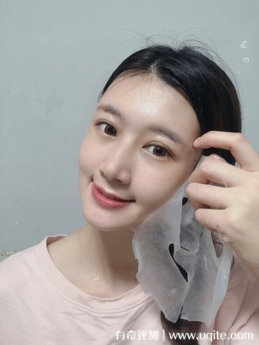 在敷貼面膜之前,先將這款精華油涂抹在面部,然后進(jìn)行按摩吸收,就可以開(kāi)始使用面膜了。這款面膜的精華液很多,,面膜紙有兩層,網(wǎng)狀的那層面膜紙主要是支撐面膜形狀,真正敷在臉上的那層面膜其實(shí)很薄,上臉完全可以達(dá)到隱形的效果,而且在使用的過(guò)程中很舒服,沒(méi)有任何不適感。