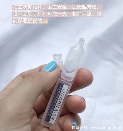 夸迪5D玻尿酸到手之后包裝是獨立的一支一支的,用起來還是挺干凈衛(wèi)生的,平時出門的話攜帶也很方便,這款玻尿酸精華打開之后味道聞著不刺激,像我臉上還有紅血絲的人,用完之后也沒有過敏,還是挺溫和的。