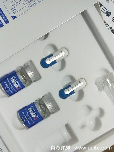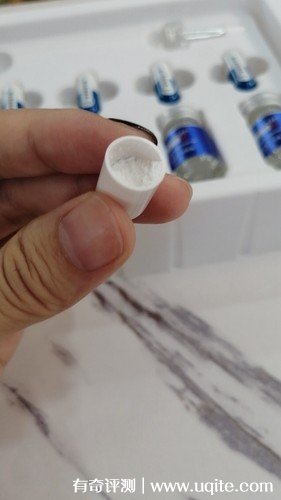 為了能看到療效我直接入手了四盒,一盒里面是有五小瓶諾富勒烯修復(fù)溶液和五粒凍干粉膠囊,還配備了五支長(zhǎng)滴管。凍干粉在上臉使用之前,是需要將凍干粉與精華液精選相互融合的。