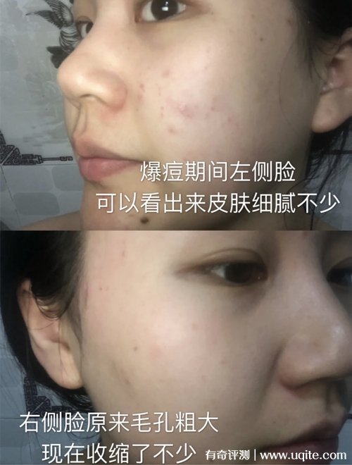 我一般都是全臉涂,涂完之后等二十分鐘左右,吸收完之后再去洗掉,第一次用完后祛痘效果不怎么明顯,倒是洗完后白頭浮起來(lái)了些,用粉刺針刮一刮就掉,第三次開始用著就沒啥感覺了,不會(huì)覺得刺痛了,痘痘稍微癟了一點(diǎn)。用了20來(lái)天的時(shí)候,痘痘基本都癟下去了,然后還有個(gè)明顯的感受就是臉上出油量好像變少了,沒有油光滿面的那種感覺了。