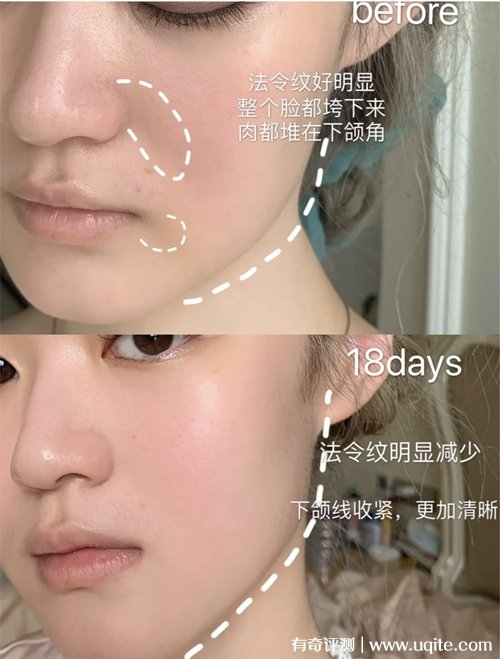 用到現(xiàn)在,我差不多用了有兩個(gè)月了,法令紋和臉上的細(xì)紋真的肉眼可見的在變淡,每次用完它就感覺皮膚很緊致、細(xì)膩有光澤,沒有之前那么松弛了,整個(gè)人都顯得特別年輕。