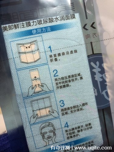 這款面膜的精華液和面紙是分開的,使用前有記得先將精華液擠到面膜紙的那一邊,然后使它們?nèi)咳诤弦院螅俨痖_敷貼在臉上就可以了。這款面膜的面膜紙不算薄,是稍厚一點(diǎn)的,質(zhì)地很不錯(cuò),不易變形。