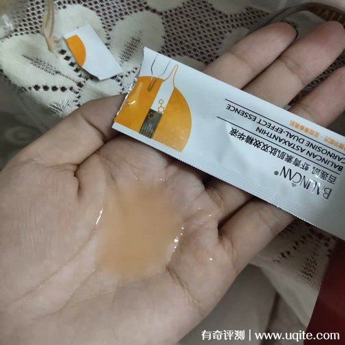 百蓮凱蝦青素精華到手之后它是一個(gè)一個(gè)的獨(dú)立包裝,平時(shí)出門也很方便攜帶,打開之后味道挺淡的,聞著也不刺激,我用完之后皮膚也沒有出現(xiàn)什么不適,還是挺溫和水潤的。