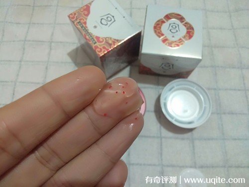 面膜上手很好推開,抹開之后,紅色的小顆粒也會(huì)隨之熔化。面膜上臉很親膚,有一種冰冰涼涼的感覺,很舒服。面膜的延展性是很好的,所以在使用的時(shí)候一定要控制好使用量。