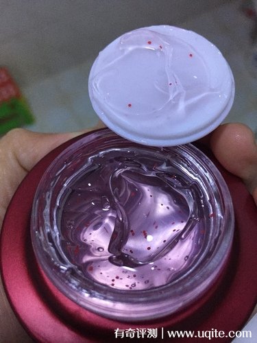 面膜是罐裝的,顏值很高,看著很有檔次。這款面膜是水凝膠的質(zhì)地,里面還夾雜著一些紅色的細(xì)小顆粒,很水潤,聞起來香香的,補(bǔ)水保濕效果很好。