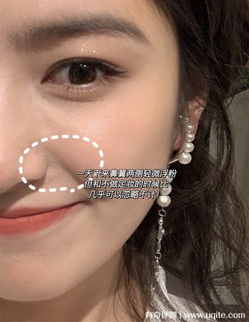 它的持妝效果也不錯(cuò),出去逛街一天中途也沒有補(bǔ)妝,回來之后發(fā)現(xiàn)妝容基本上沒有怎么脫,只有鼻翼兩側(cè)會有微微的脫妝,整體妝容還是很完整的,而且也沒有暗沉。