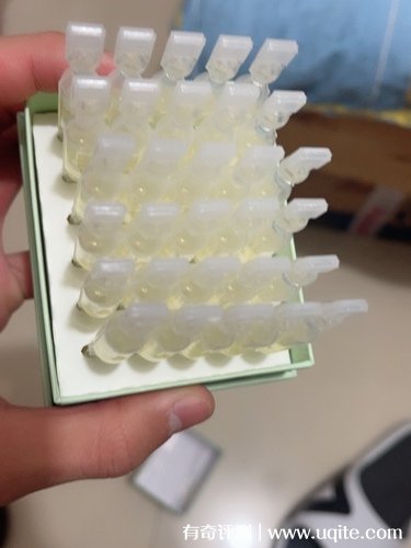 這款玻尿酸精華液都是獨(dú)立的包裝,是用一支扔一支的那種,使用起來方便、衛(wèi)生,而且出門攜帶也一點(diǎn)不麻煩。這一盒產(chǎn)品里面有六板精華液,每板五支,一共是三十只,剛好一個(gè)月的使用量。