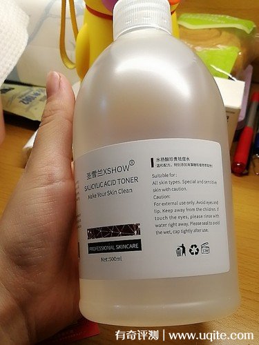 圣雪蘭的這瓶水楊酸爽膚水份量還是挺足有500ml,而且店家還有贈送化妝棉。拿到產(chǎn)品的當(dāng)天晚上我就迫不及待的用了起來,這款水楊酸爽膚水流動性很強(qiáng),所以最好是搭配化妝棉或者干面膜使用,這樣吸收效果會更好。