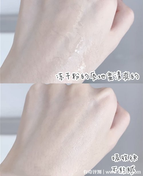 圣幸凍干粉凍干粉充分融合后,質(zhì)地是透明狀的,我主要是涂在痘印和閉口嚴重的地方,它用在臉上不黏膩,吸收速度還挺快的隨便怕打幾下就全部吸收了,用完之后臉還挺滋潤的,而且它的保濕效果也不錯,我用完這個之后就沒有涂其他的護膚品,這么干燥的天氣一晚上下來臉也不會覺得干。
