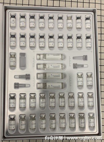 這凍干粉套裝一共是44件套,里面出來凍干粉和熔煤液各20瓶以外,還有4瓶10ml的羊胎素嫩顏修護(hù)原液,感覺就還挺劃算的,份量挺多。在使用時凍干粉和熔媒液要進(jìn)行調(diào)和使用,調(diào)和均勻以后凍干粉會完全溶解于熔煤液中,變成透明的質(zhì)地。
