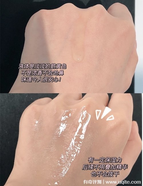 它的流動性強,是不稠的精華質(zhì)地,用著很好吸收,而且完全不油不粘膩,油皮用著也沒有什么負擔(dān),吸收之后臉上很水潤,手感都變好了,嫩嫩的,補水效果很好,我用完這款原液之后就沒有用其他的護膚品了,第二天醒來皮膚都還是潤的,保濕效果也不錯。